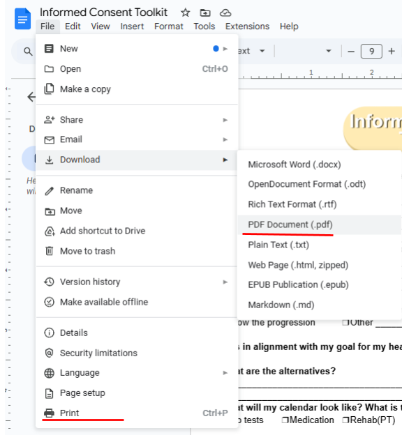 After you get access to the toolkit or resource on Google Doc, Download or print the form.